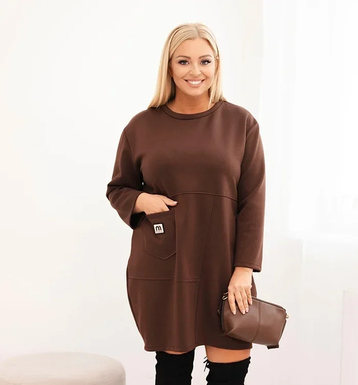 Ši itališka ruda suknelė su kišene ir 3/4 rankovėmis leis jaustis patogiai bet kokia proga. Minkštas, švelnus audinys ir laisvas kirpimas suteikia lengvumo, o šilta ruda spalva kuria jaukumo įspūdį.